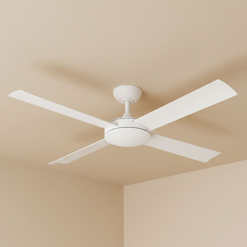 This ceiling fan is engineered as a high-efficiency air circulation solution for modern residential interiors and covered outdoor environments, finished in a refined matt white and configured with a precision-balanced 4-blade aerodynamic system across a 1220mm (48-inch) span for stable and uniform airflow distribution. The slimline body profile and optimised blade geometry minimise turbulence while maintaining an overall installed height of 300mm for efficient performance in standard ceiling spaces.