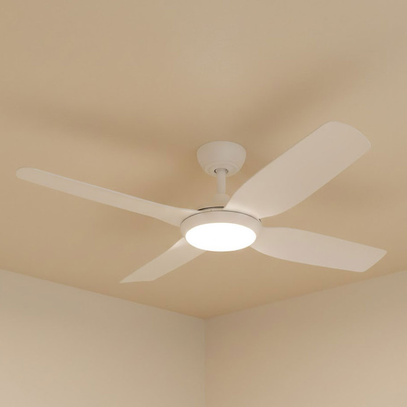 This ceiling fan integrates high-efficiency air circulation with advanced smart lighting control, delivering a refined climate management solution for modern residential and covered outdoor environments. Finished in matt white, the unit features a precisely balanced 4-blade aerodynamic assembly with a 1220mm (48 inch) blade span, driven by a high-performance 33W DC motor capable of rotational speeds of up to 220 RPM. The optimised 14° blade pitch is engineered to maximise airflow output while maintaining low acoustic output across all six operating speeds.