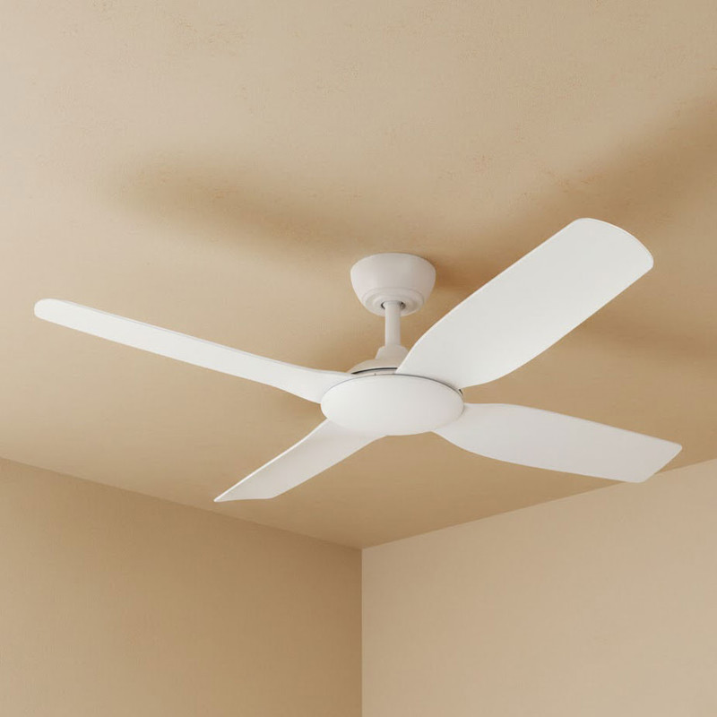This ceiling fan delivers a refined balance of aerodynamic efficiency, smart control functionality, and compact architectural form, engineered for reliable performance in modern residential and covered outdoor environments. Finished in matt white, the fan features a precisely balanced 4-blade configuration with a 1220mm (48 inch) blade span, driven by a high-efficiency 33W DC motor producing rotational speeds of up to 220 RPM. The optimised 14° blade pitch is calibrated to maximise volumetric air displacement while maintaining low acoustic output across all six speed settings.