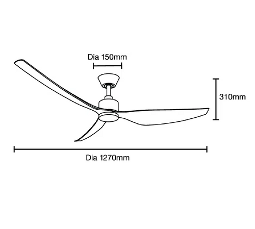 This ceiling fan delivers a refined balance of aerodynamic efficiency and architectural simplicity, engineered to provide stable airflow performance for modern residential environments. Finished in matt black, it incorporates three precision-moulded ABS blades driven by a quiet and energy-efficient 33W DC motor. The 1270mm blade span, combined with a calibrated 17° pitch, enables the fan to generate high-volume air movement while maintaining low mechanical resistance, ensuring smooth, consistent operation across all speed levels.