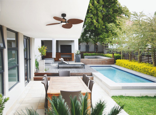 This ceiling fan is constructed with a steel body and canopy complemented by durable ABS blades and a PMMA lens cover for long-term operational performance. The 150mm ceiling canopy with a 10° hangsure configuration ensures stable installation at an overall installed height of 340mm. Designed for indoor and covered outdoor environments, the fan includes smart WiFi control, breeze and sleep modes, timer off functions, and is protected by a 6-year warranty comprising 3 years in-home service with an additional 3-year motor replacement.