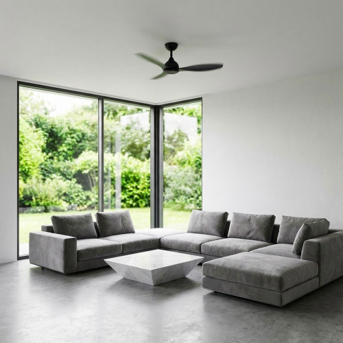 This ceiling fan combines architectural efficiency with a refined slimline form to deliver stable airflow performance for modern interior environments. Finished in black, it incorporates three aerodynamically contoured ABS blades engineered to minimise turbulence while sustaining smooth rotational stability. The steel body and canopy enhance structural durability, allowing the fan to integrate seamlessly into both residential living spaces and covered outdoor areas where reliability and controlled airflow are essential.