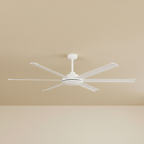 This ceiling fan combines architectural precision with advanced energy-efficient performance, engineered to deliver optimal airflow for both indoor and covered outdoor environments. Finished in Matt White, it features six aerodynamically contoured aluminium blades powered by a high-efficiency 55W DC motor, ensuring strong yet quiet operation. The steel body and canopy provide structural rigidity, while the integrated PMMA lens cover enhances visual uniformity and protection. Its balanced 1650mm (65 inch) blade span and 10° pitch are precisely calibrated to move large volumes of air efficiently, achieving superior cooling performance across open-plan interiors and expansive spaces.