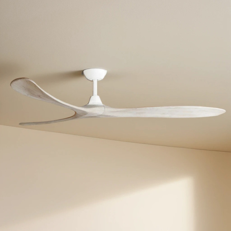 This ceiling fan offers an elegant and high-performing climate control solution for expansive residential interiors. Featuring a generous 72-inch (1830mm) blade span, the fan is purpose-built to deliver sweeping airflow across large enclosed spaces such as living rooms and dining areas. Its construction incorporates three hand-finished blades crafted from Paulownia timber—an exceptionally lightweight, moisture-resistant, and sustainable material. The matte white and washed oak finish enhances the visual appeal, creating a harmonious blend of contemporary and natural design elements suitable for refined interior aesthetics.