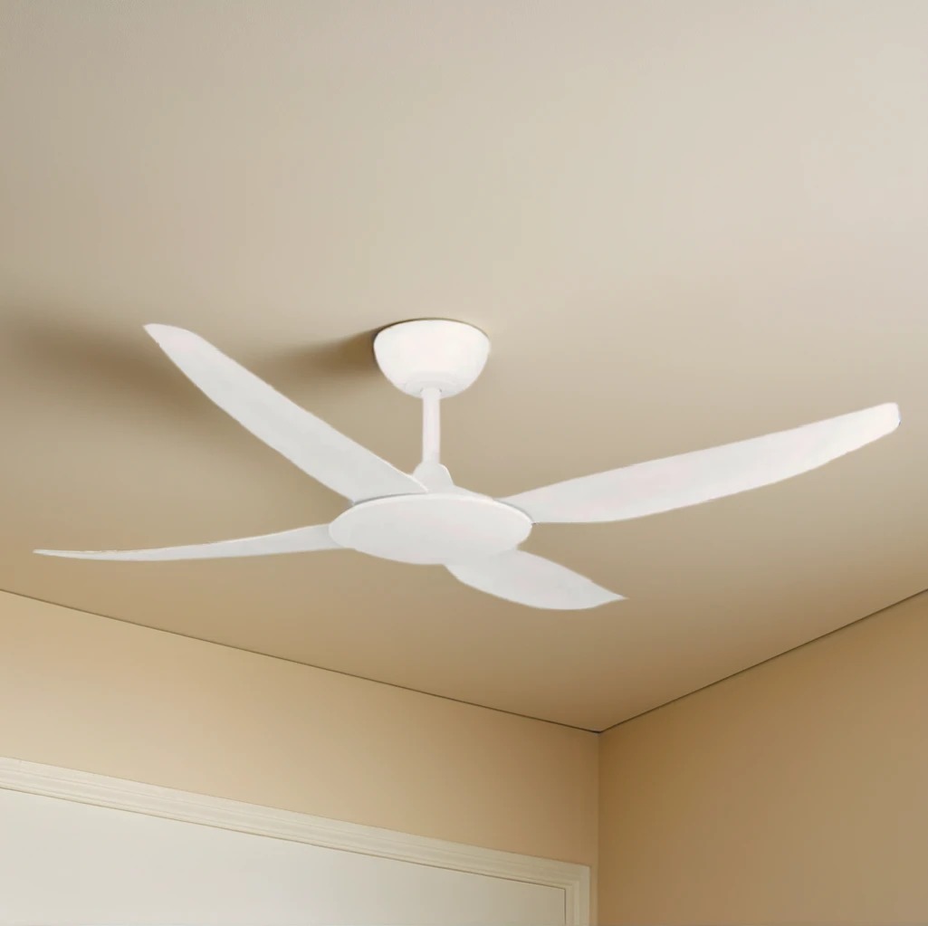This ceiling fan is a meticulously engineered solution, blending modern aesthetics with superior functionality to meet the demands of contemporary spaces. With a 132cm (52-inch) diameter and a matte white finish, this fan is designed to seamlessly complement a wide range of interior styles, from residential living areas to enclosed outdoor spaces. Its construction utilizes durable ABS material for the body, blades, and canopy, making it lightweight yet robust, with superior resistance to corrosion. This ensures the fan maintains its integrity and aesthetic appeal even in challenging environments, contributing to a long-lasting investment for your home or commercial space.