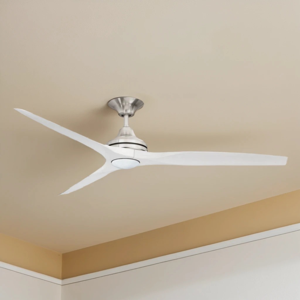 "This ceiling fan with light is a sophisticated and high-performance cooling solution designed for modern interiors. Featuring a powerful 188 x 25mm AC motor, it delivers exceptional airflow efficiency while maintaining quiet operation. The three meticulously crafted polymer ABS blades ensure optimal aerodynamic performance, reducing drag while enhancing overall cooling effectiveness. The brushed nickel motor housing, combined with white-wash finished blades, presents a refined aesthetic that seamlessly integrates into contemporary spaces. Engineered for year-round comfort, this fan includes a reverse function, allowing for cooling airflow during summer and warm air circulation in winter, ensuring an energy-efficient climate control solution.