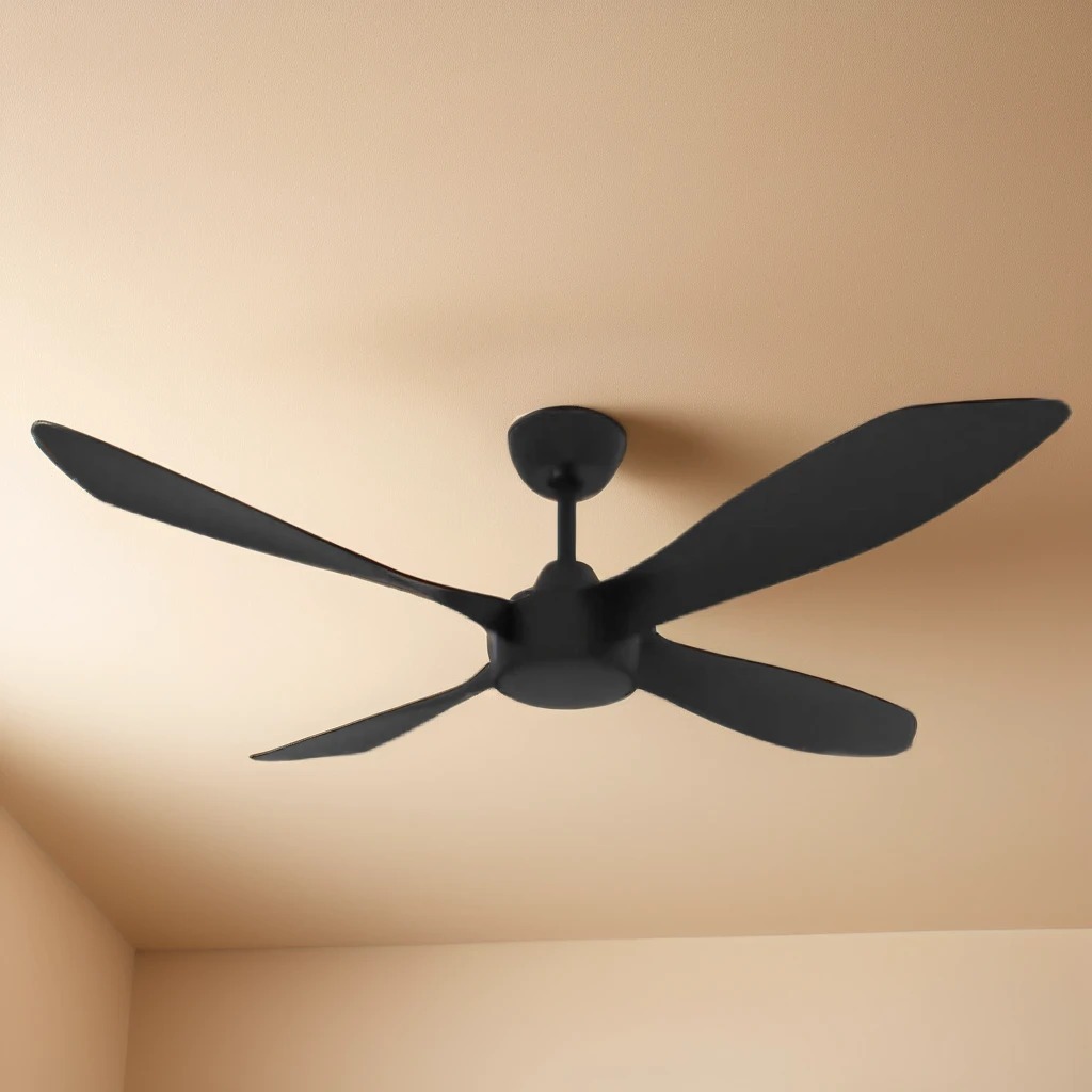 This ceiling fan exemplifies precision engineering and superior design, delivering both performance and aesthetic refinement in residential and light commercial environments. Measuring 1320mm in diameter (52 inches), it features a streamlined four-blade configuration constructed from durable ABS polymer, ensuring excellent resistance to moisture and deformation. The matte black finish offers a sleek, modern aesthetic that integrates effortlessly into contemporary interiors, while the fan’s low-profile 318mm height enables discreet installation in spaces with limited ceiling clearance.