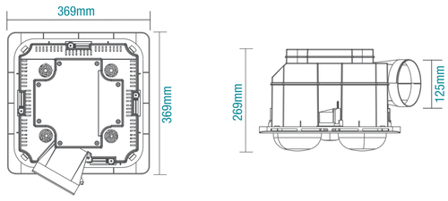 Installation requires a ceiling cutout of 320mm x 320mm and a minimum cavity depth of 200mm. The unit connects to standard 125mm ducting and includes two 1-metre duct lengths, two clips, and a fixed external grille to facilitate effective air discharge. Its Class II rating ensures double insulation for added electrical safety. This design is ideal for bathrooms where reliability, compact form, and combined functionality are essential.