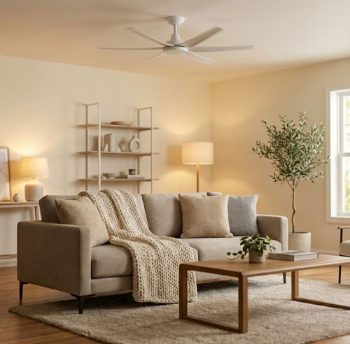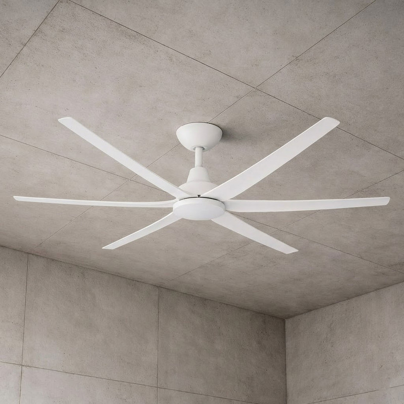 This white 6-blade 80-inch ceiling fan is a high-performance solution designed to deliver efficient air circulation and enhanced comfort for both residential and commercial spaces. Crafted from premium ABS polymer, the fan’s motor, canopy, and blades are designed to withstand the demands of everyday use while offering exceptional durability. With a sleek, modern aesthetic, this ceiling fan is well-suited for contemporary interiors, providing both functional cooling and a sophisticated appearance.
